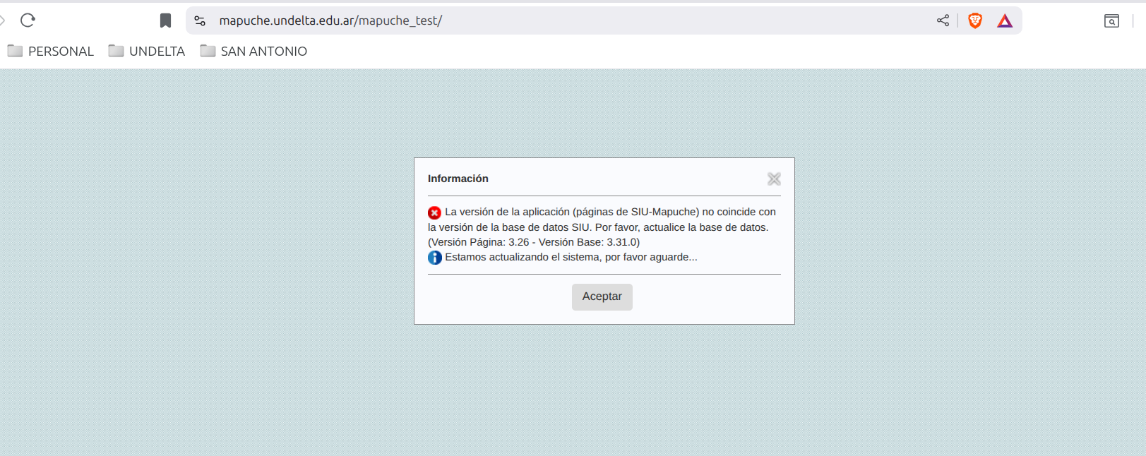 Buenas tardes, perdón las molestias, quisiera saber si alguien me podría ayudar a actualizar la versión de mapuche, pero al actualizarlo, se me actualizo la base de datos y al ingresar a la web del mapuche test me dice que la aplicacion no coincide con la versiòn de la base de datos.