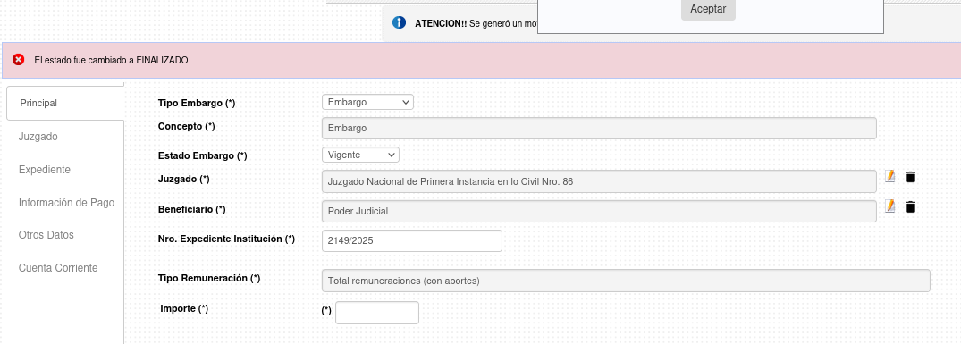 Al momento de cargar un embargo tira el siguiente error en pantalla.