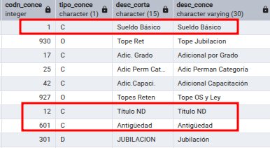 Son estos 3 conceptos que no salen el nombre, el resto de las columnas y conceptos salen bien, que puede ser, o donde puede estar el error?. En la base , en la tabla tmp_detalle_liquidación