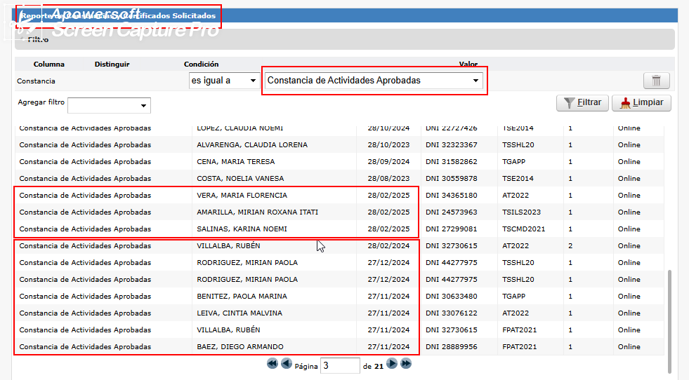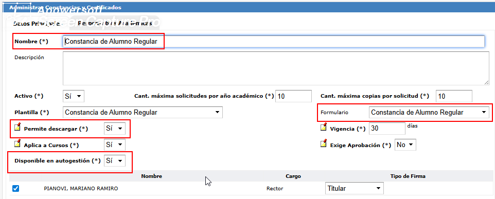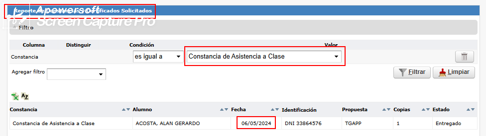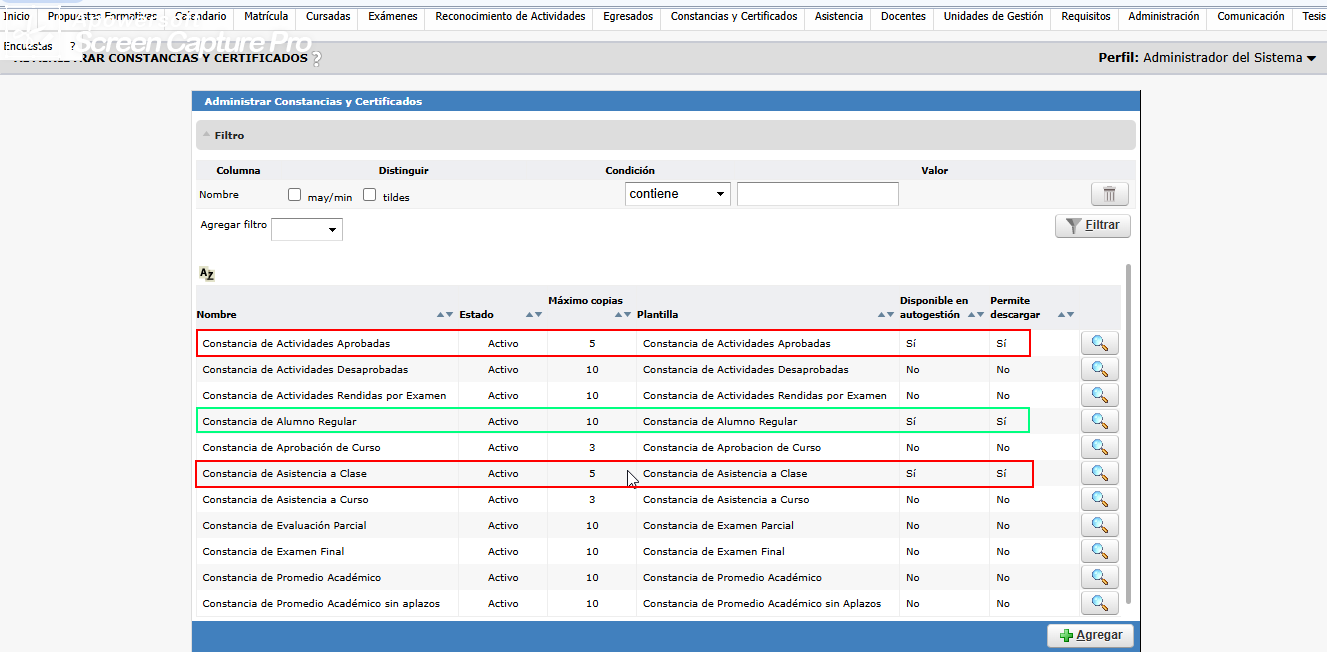 Buenas tardes! Estamos con la versión 3.18, tenemos estos 3 reportes nada más personalizados (Constancia de Alumno Regular, Constancia de materias aprobadas y constancia de asistencia a clases)