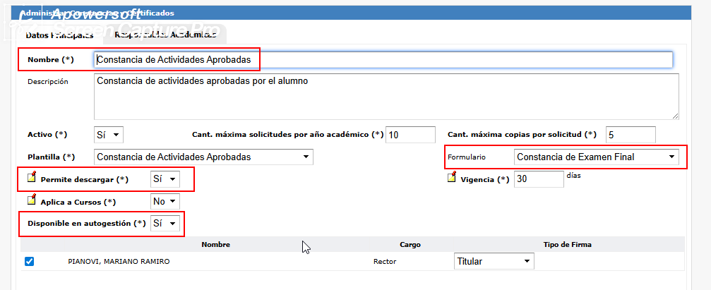 Verificaron que este correcta la información de las Responsables Académicas que figuran en la pantalla de la operación Administrar Constancias y Certificados solapa Responsables académicas? no enviaron esa captura.