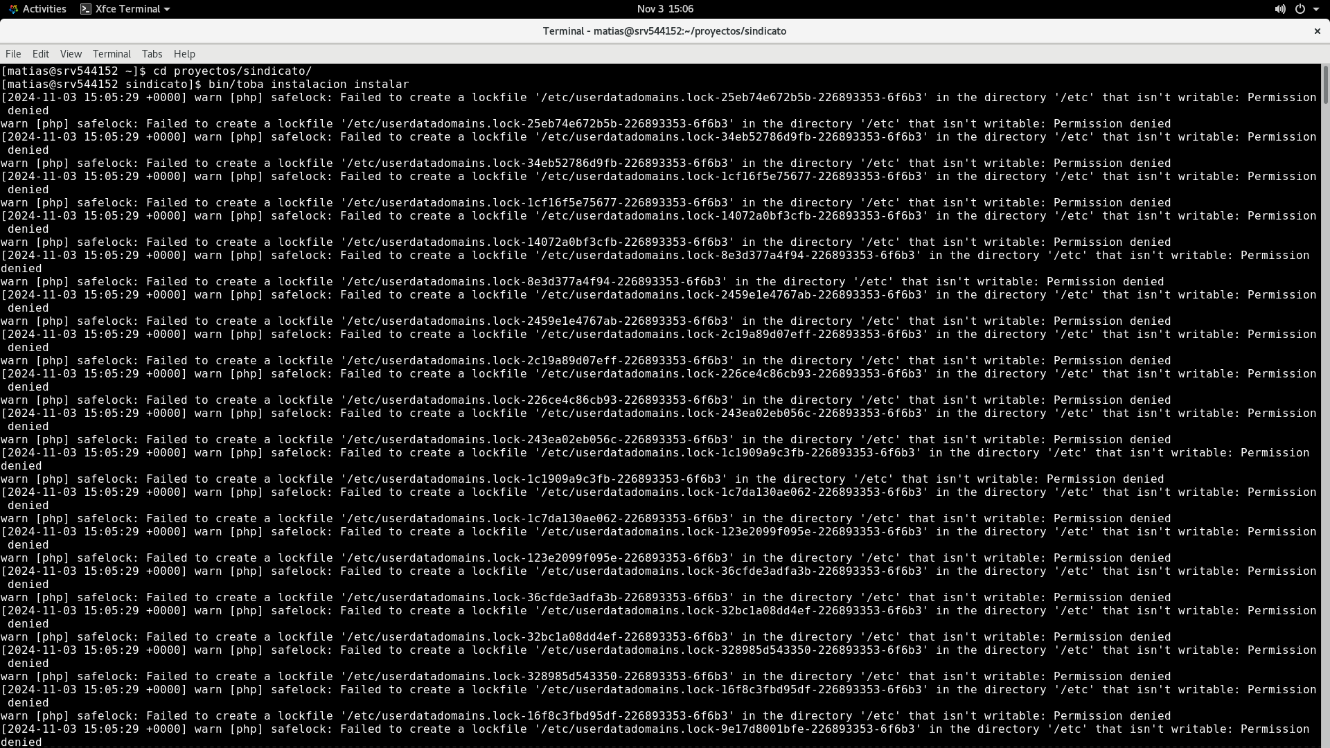 Cuando ejecuto el comando toba instalacion instalar me da varios errores de acceso denegado.