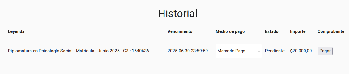 Desde administrar periodos de inscripción a propuestas > Medios de pagos vas a poder limitar para una propuesta en particular, que medios de pago va a dejar disponibles, pudiendo ser uno que no se encuentre en el canal virtual.